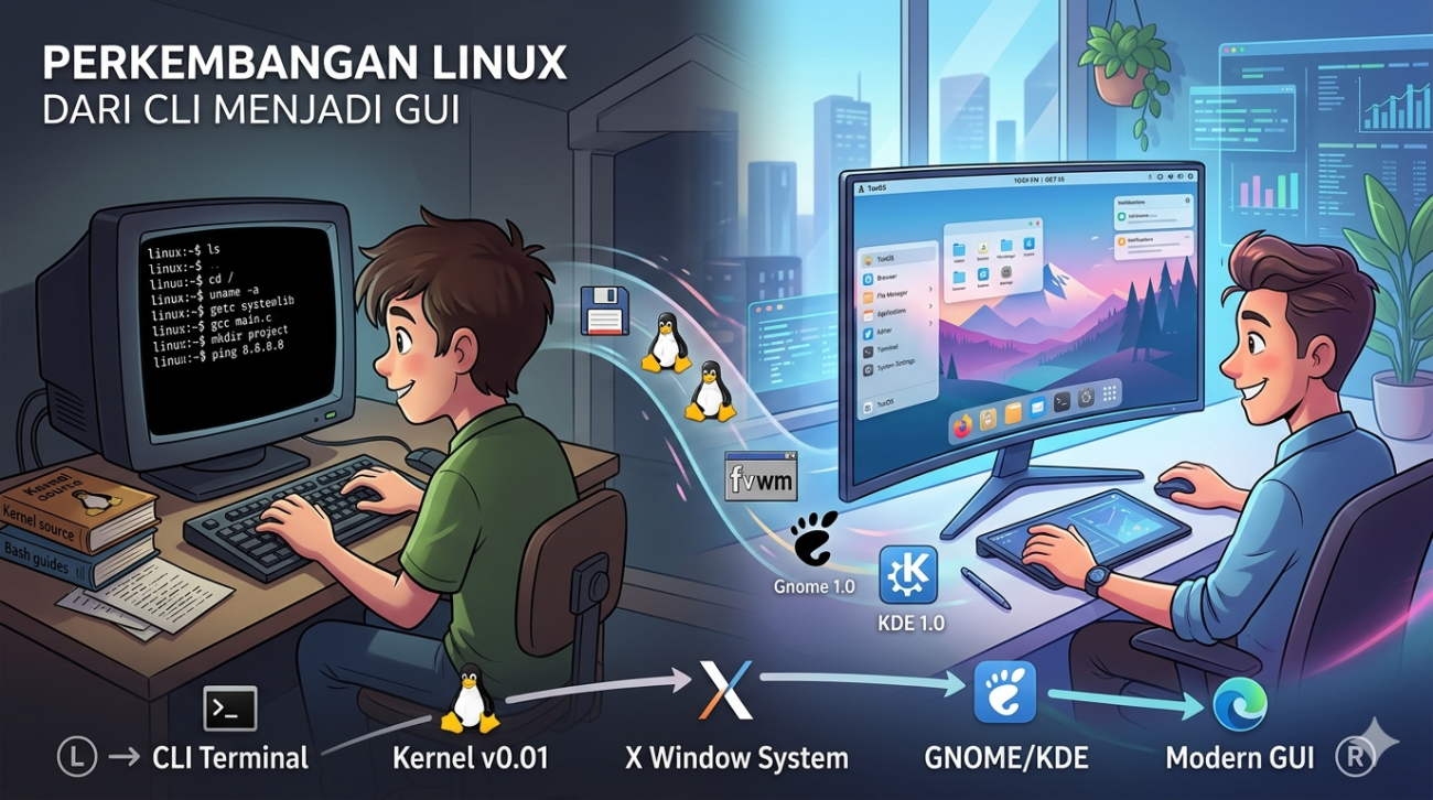 Perkembangan tampilan Linux dari CLI ke GUI adalah bukti nyata bagaimana sebuah teknologi bisa berevolusi tanpa kehilangan jati dirinya. Dari baris perintah yang dingin, kini Linux memiliki antarmuka yang paling cantik dan fleksibel di dunia.